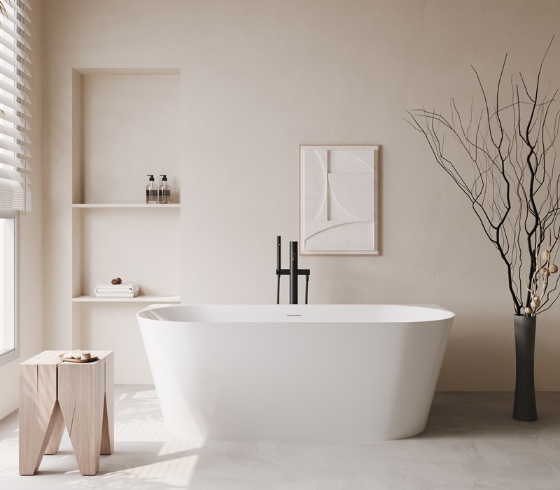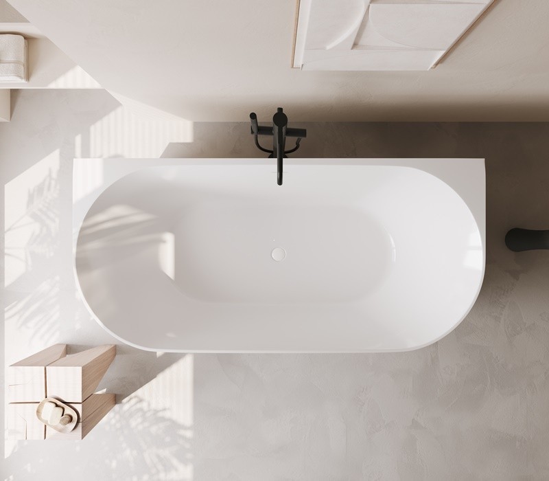 Cada freestanding lipita la perete cu dimensiuni de 140x70 cm, montaj pe pardoseala, model Ambient. Aceasta este fabricata din acril sanitar premium. O cada practica si eleganta ce va da un aspect modern baii dvs.