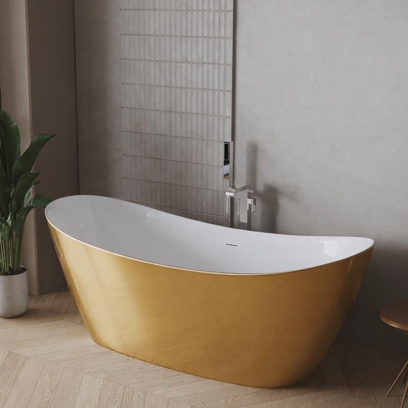 Cada freestanding cu dimensiuni de 170x75 cm, montaj pe pardoseala, model Iris Gold lucios. Aceasta este fabricata din acril sanitar premium. O cada practica si eleganta ce va da un aspect modern baii dvs.