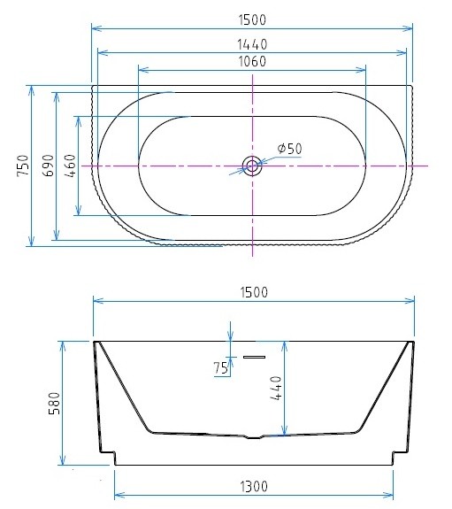 Cada freestanding lipita la perete cu dimensiuni de 150x75 cm, montaj pe pardoseala, model Monza. Aceasta este fabricata din acril sanitar premium. O cada practica si eleganta ce va da un aspect modern baii dvs.