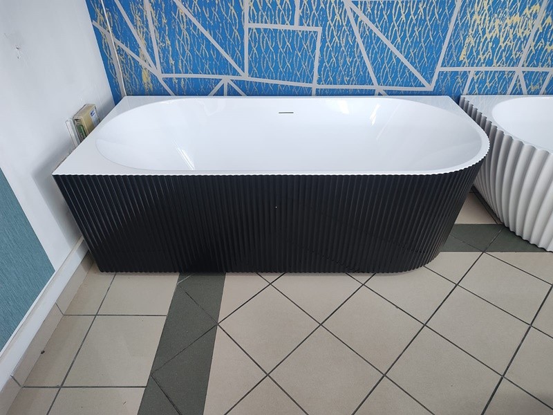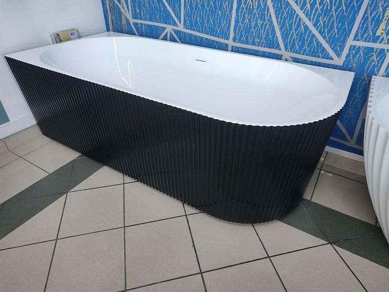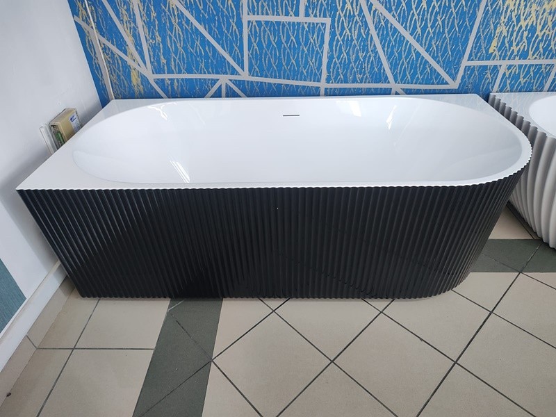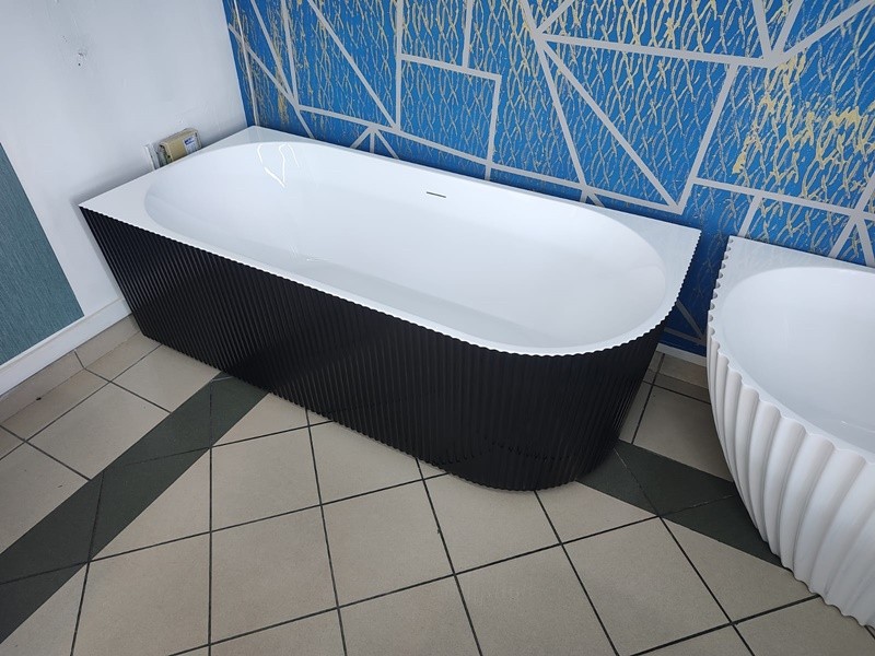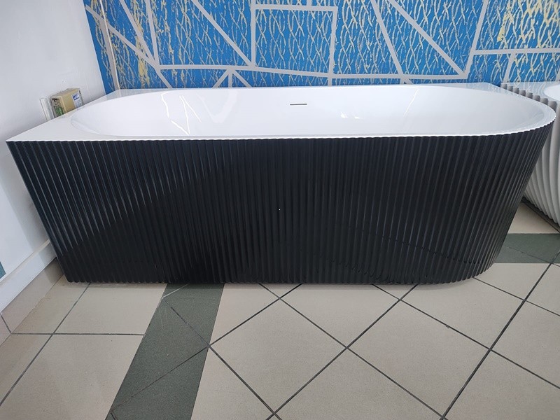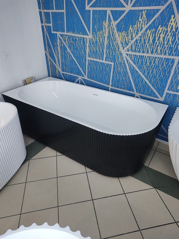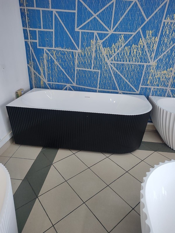 Cada freestanding lipita la perete, de colt, cu dimensiuni de 170x78 cm, montaj pe pardoseala (pe partea stanga), model Parma Black. Aceasta este fabricata din acril sanitar premium. O cada freestanding ideala pentru o baie cu un design elegant.