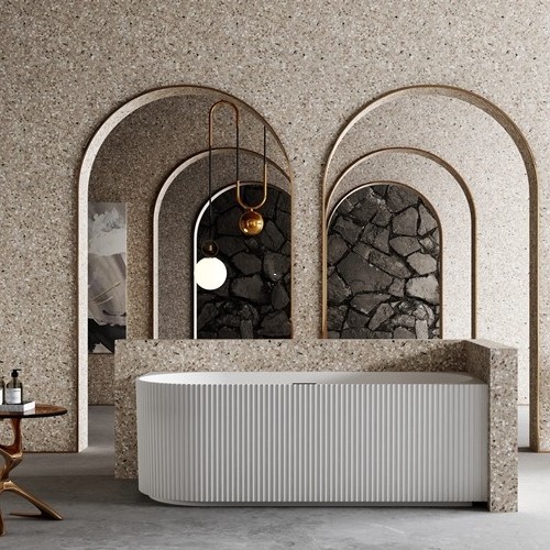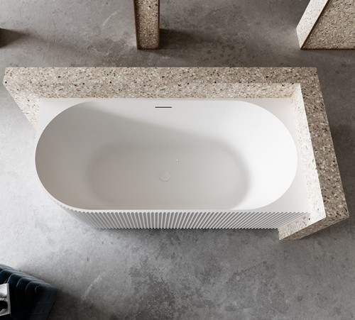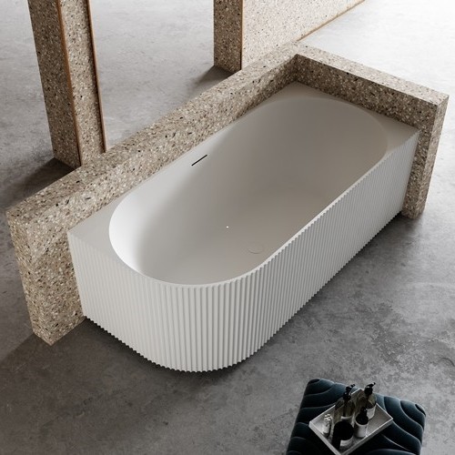 Cada freestanding lipita la perete, de colt, cu dimensiuni de 170x80 cm, montaj pe pardoseala (pe partea dreapta), model Rina. Aceasta este fabricata din acril sanitar premium, culoare alb. O cada freestanding ideala pentru o baie cu un design elegant.