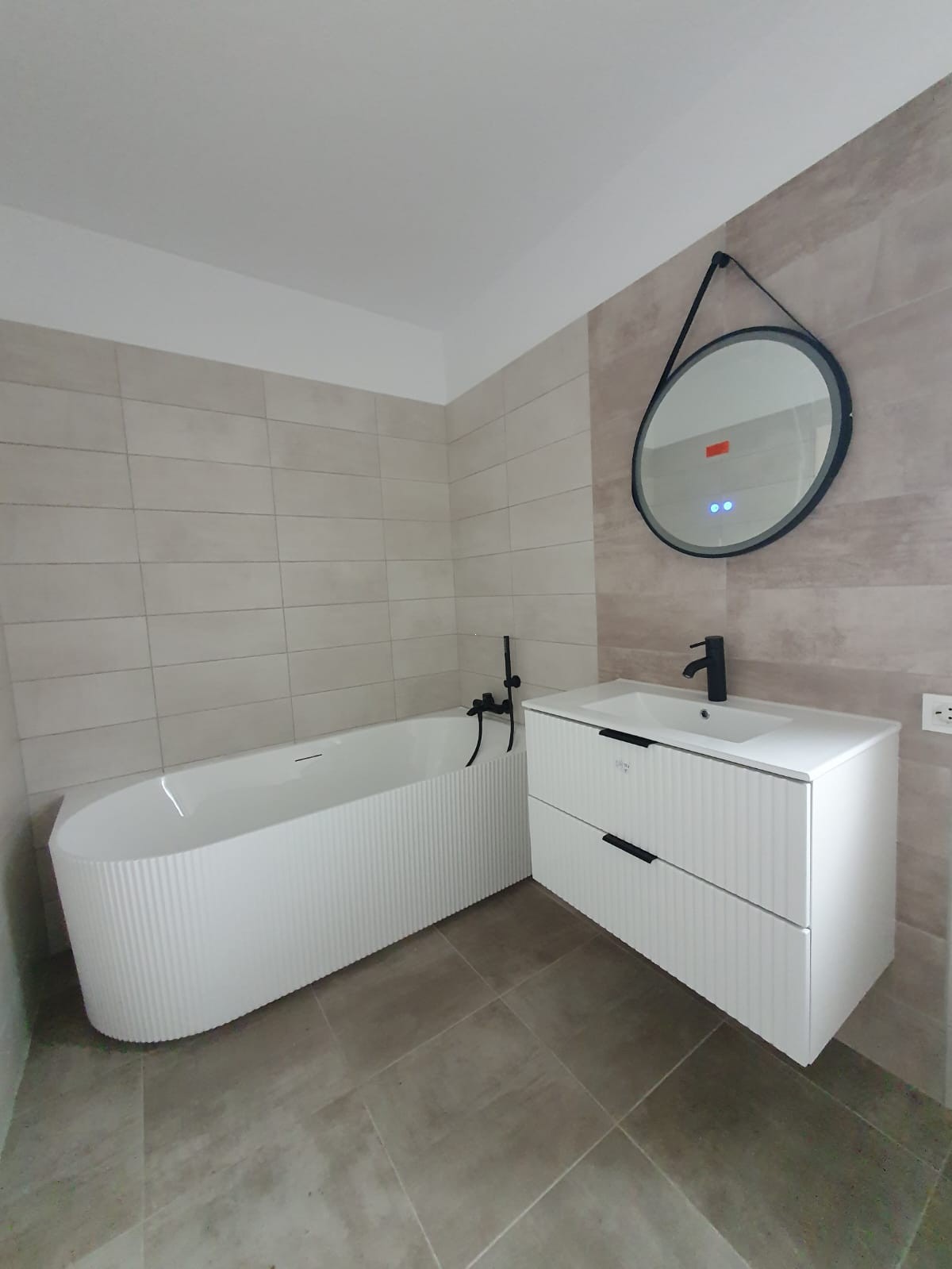 - Material bazin – acril premium. Suprafata perfect neteda, fara pori, cu o durabilitate foarte mare.